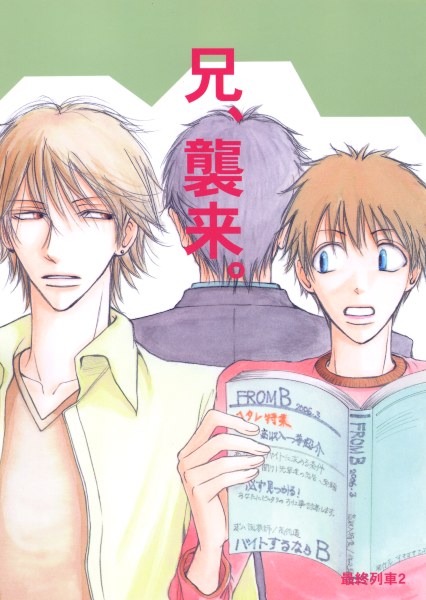 ・大学生 ・クール天然攻め×純朴天然受け 「最終列車」続編。 進展するんだかしないんだか、天然同志のまったりほのかな 日常はだらだらと過ぎてゆく。 そんな中突如弟を激愛するハルの兄がやって来た。 そして2人の大学でひっそりと事件が発生する。 刑事事件ものですが、兄が登場する所までです。 《2011.6.26/第2版発行》 | |||||||||